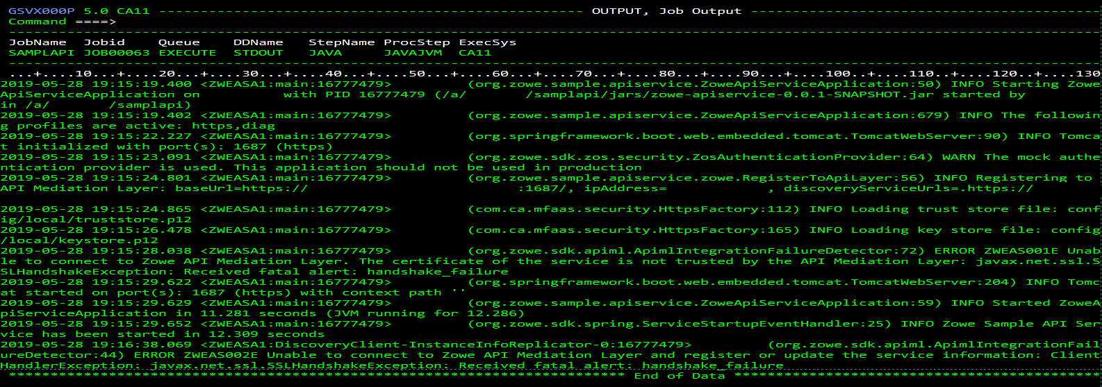 With all artifacts uploaded, you can run the sample server from the z/OS Unix Shell using java commands or via a started task / batch job with JCL.