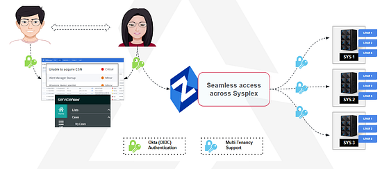 To better illustrate these enhancements let’s consider the case of Ashton, a mainframe Operator. An event is recorded by his monitoring solution and immediately picked up by Ashton. On this occasion, he needs a subject matter expert, Jane, to investigate further and shares the event details with her as part of a newly opened case ticket. Jane clicks on the event link in the case to see the details and begins troubleshooting. She has an active Okta session so she is taken directly to the event in the monitoring solution without needing to authenticate. Jane’s troubleshooting requires her to access multiple sysplexes in their cross-sysplex environment. She has the necessary privileges and is able to seamlessly access the data without having to authenticate at each sysplex boundary. Jane quickly finds the issue and updates the case with the necessary data for Ashton to resolve the event.