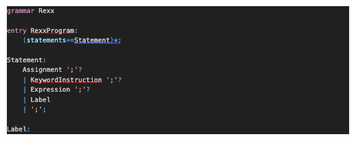 To develop an accurate grammar for Rexx, I had to extensively study the existing ANTLR4 grammar from the IntelliJ IDEA plugin and the IBM official Rexx language documentation to learn the nuances of the syntax and to translate them into Langium’s grammar format.