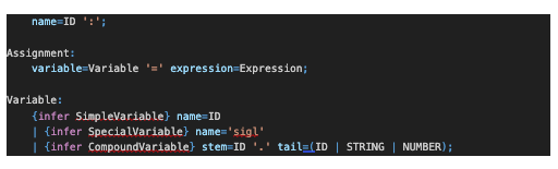 Here is a brief excerpt from the Langium grammar: