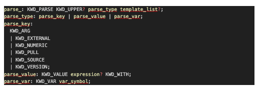 For example, the following ANTLR4 instructions for a Rexx parse instruction: