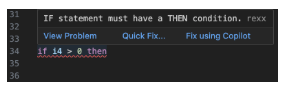 Finally, I ran “npm run langium:generate” followed by “npm run build” to convert the Langium grammar and validation logic into executable code. After launching the VS Code extension (by pressing the F5 key), we can view a sample Rexx file locally: